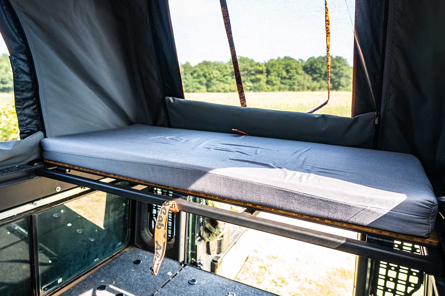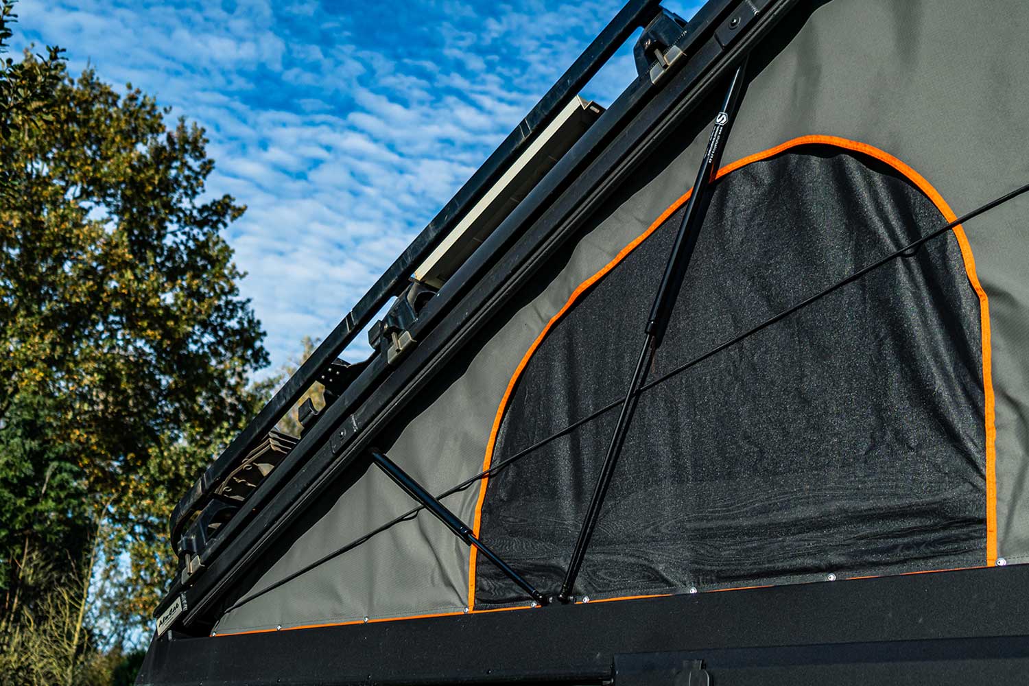 - Gas struts assist with lifting the roof, bed platform and access hatch (Nm respectively: 500 Nm long strut on side, 400 Nm short strut on side, 150 Nm external helper struts, 350 Nm bed platform and 200 Nm, access hatch)
