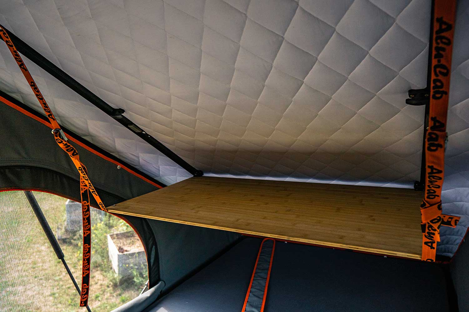 Beyond the table, we’re also considering adding a multi-pouch storage bag to the ceiling. We’ve seen these in Alu-Cab’s tents and in other Icarus setups, and they look like a perfect complement to keep the interior even more organized.