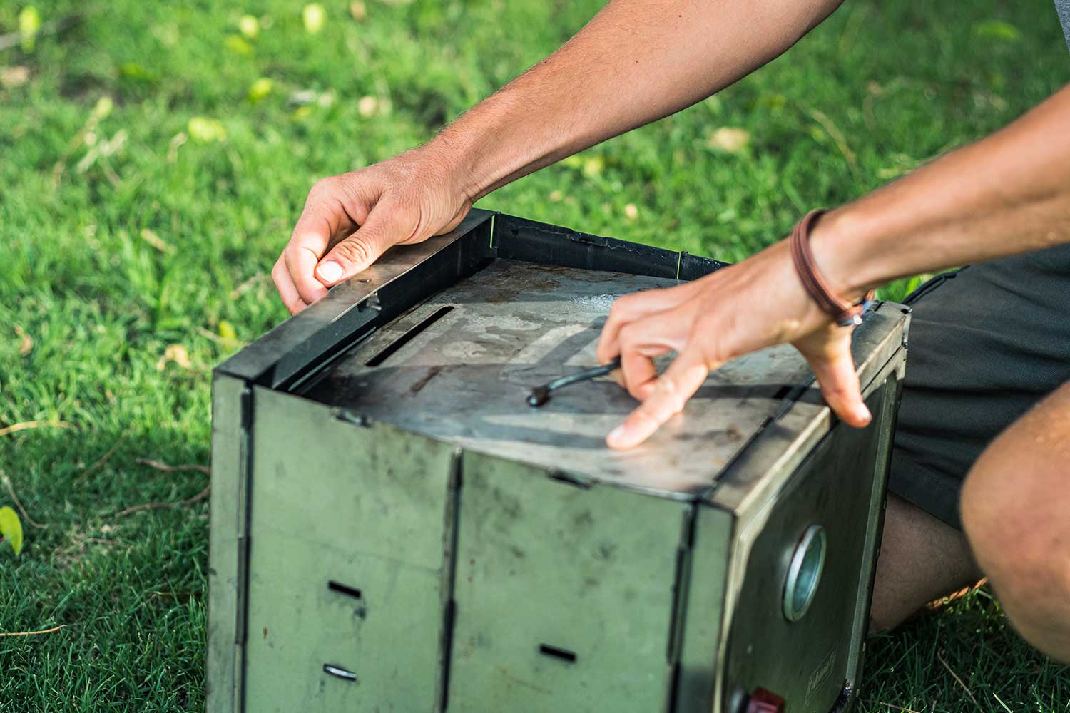 We use the foldable oven for our pizza tradition, lasagna, oven dishes, cakes, cookies, bread and more. Whilst at first, it was solely for the pleasantries like our pizza, it recently also proved essential for making bread in the remote regions of Gabon and Namibia. Especially Manon loves baking, more so even when she’s stressed or a lot of work needs to be done. Baking for her, is a stress reliever. Luckily for her, we have the oven, luckily for Tobias, he has Manon. So what is it and how does it work?