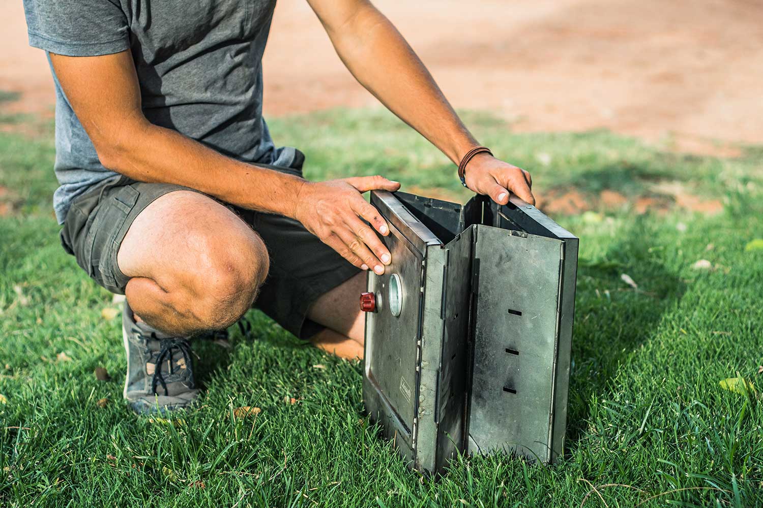 As mentioned above, the Camp Oven is a foldable lightweight oven that you place on top of your camping stove. Due to its foldable design, it is easy to store and therefore doesn’t take up too much space. Because the oven is meant to be put on top of your existing stove, it doesn’t have a heating element. Thanks to this lack of anything technical, it saves space once again and makes it a fool-proof, almost unbreakable item. A few key features worth mentioning are a plastic doorknob so you don’t burn your fingers and a temperature gauge that will save your ass (every time, we promise).