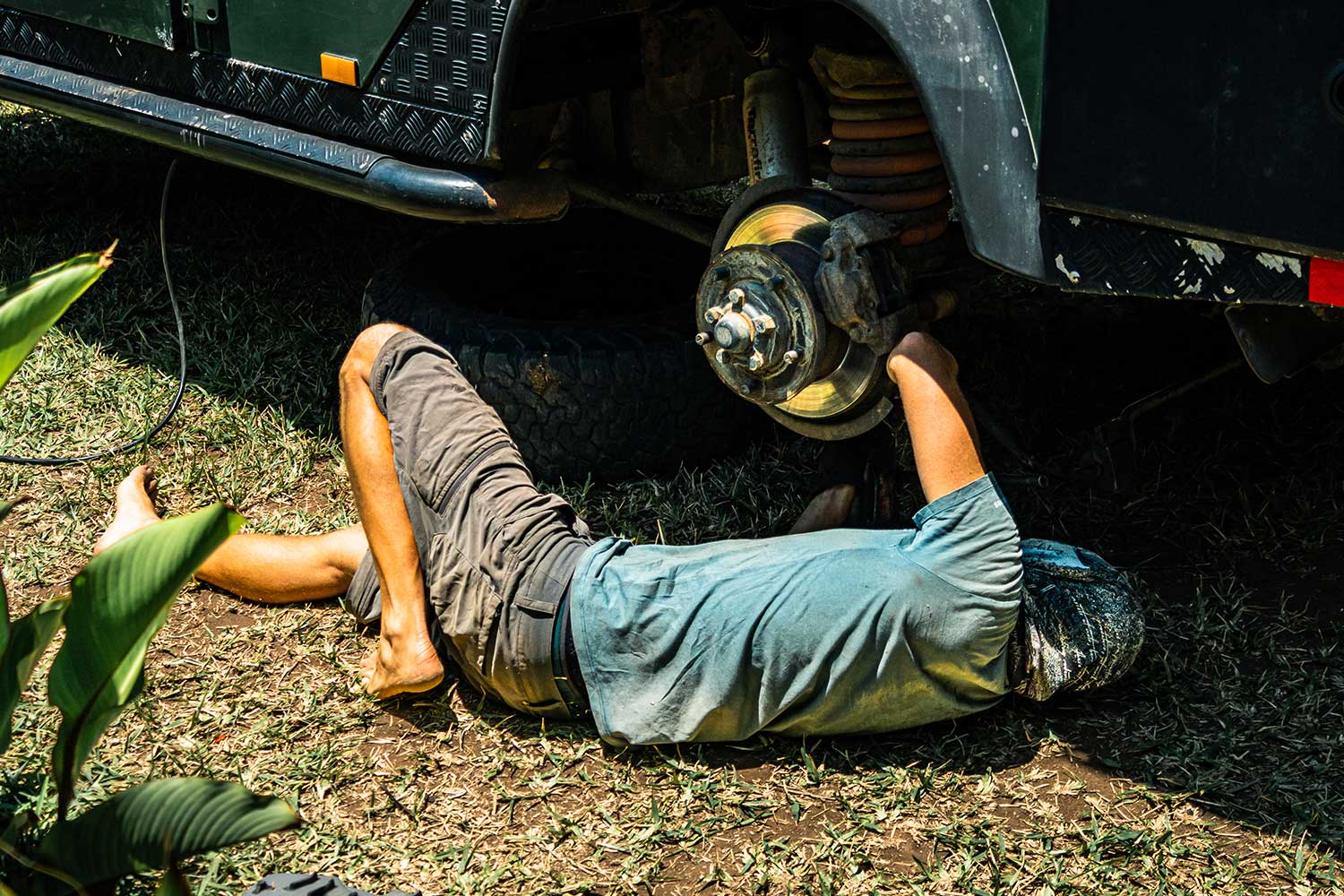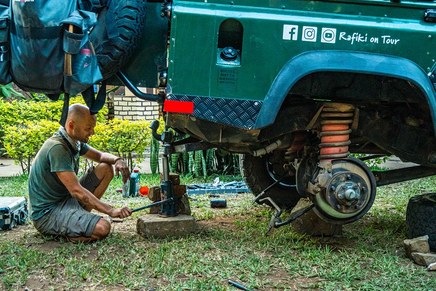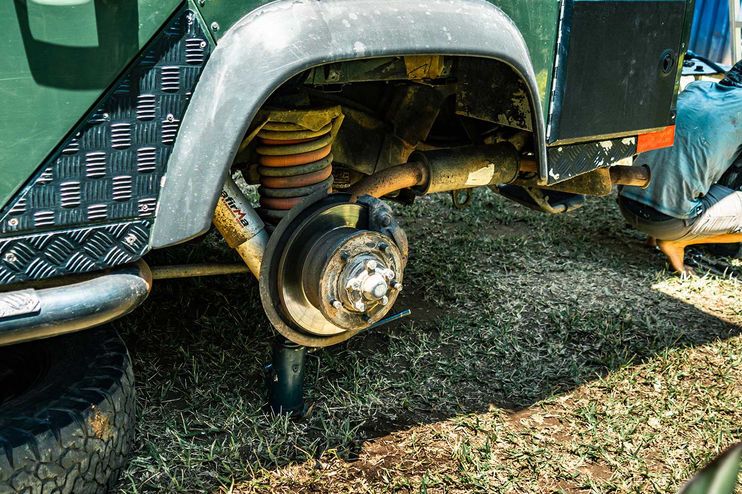 The biggest hurdle with new parts is always removing the old stuff first. Especially on 25-year-old Land Rovers, things tend to rust and the last time we replaced the suspension setup was back home 2,5 years ago. With this installation, the challenges were the same, as removing the old components proved to be more challenging than we hoped.