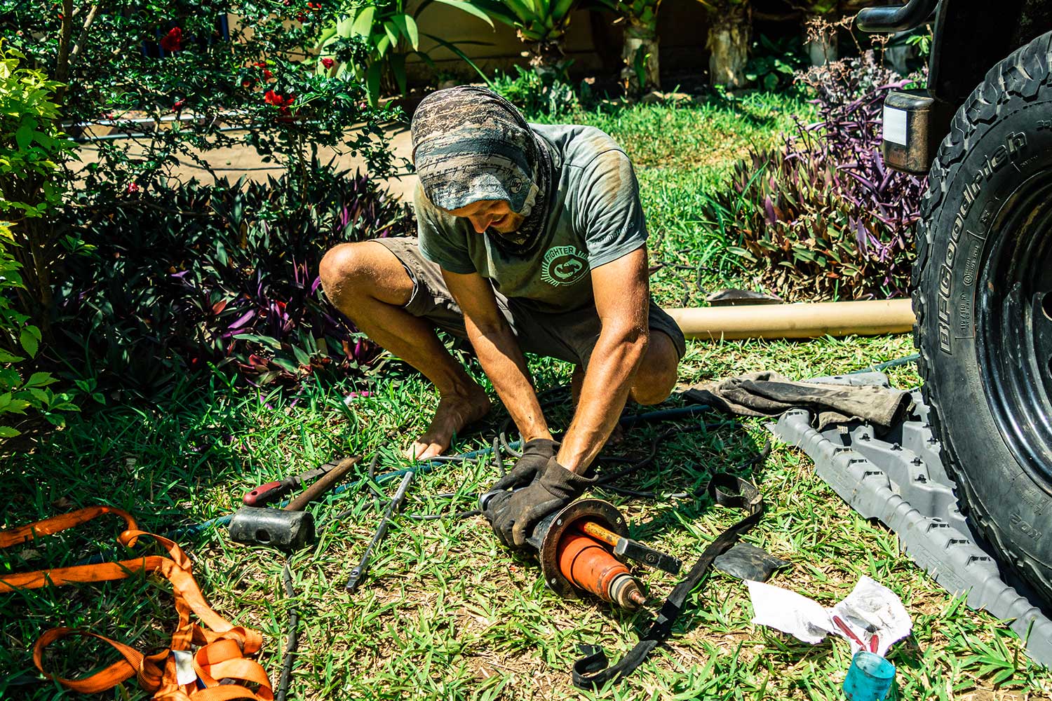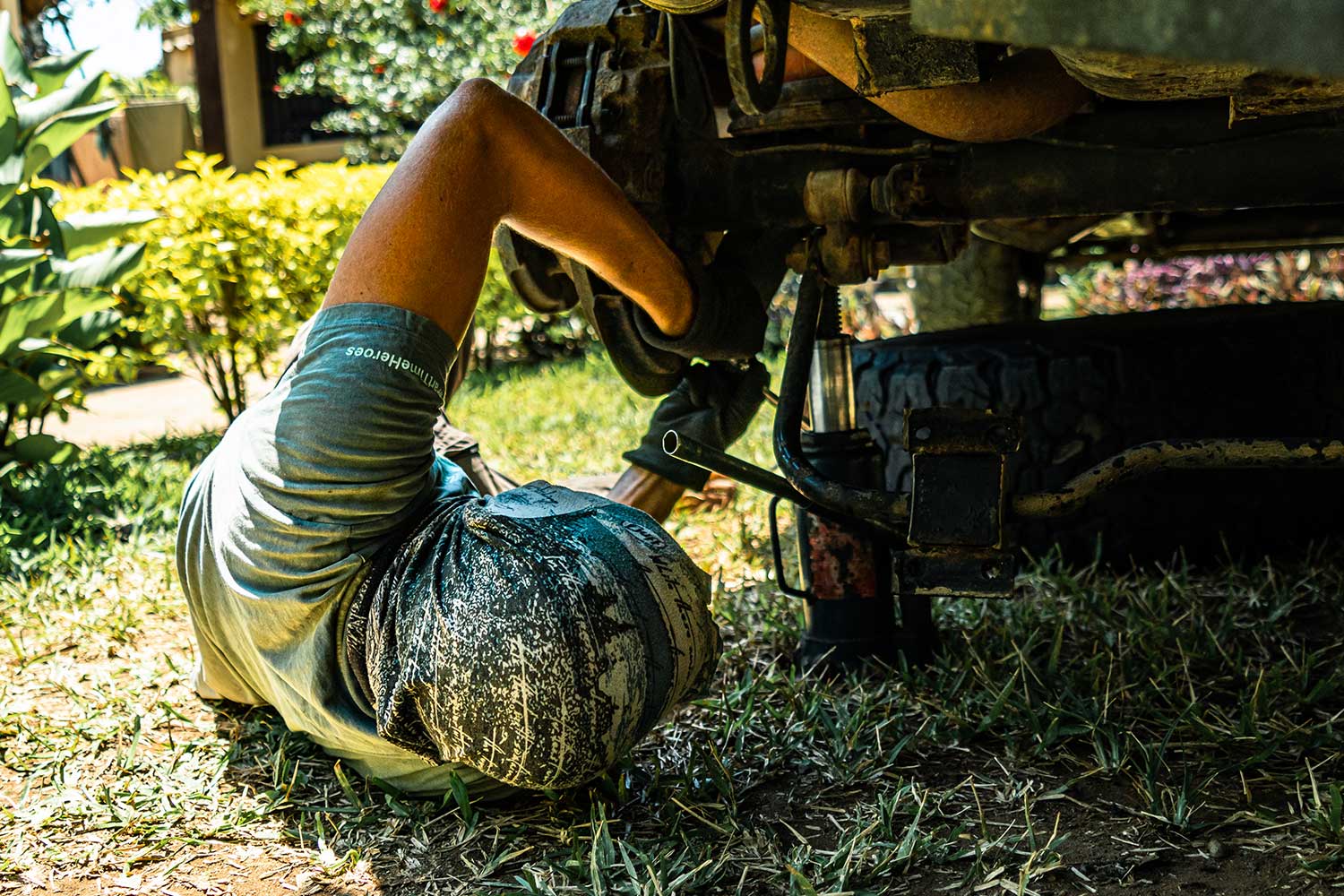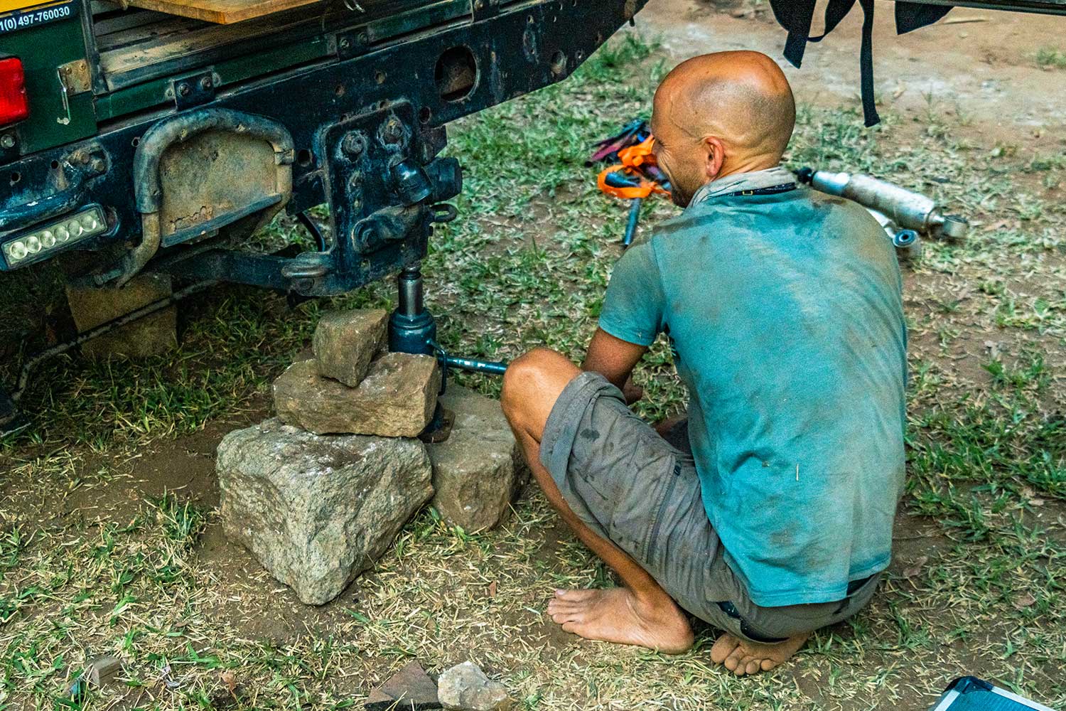 The biggest hurdle with new parts is always removing the old stuff first. Especially on 25-year-old Land Rovers, things tend to rust and the last time we replaced the suspension setup was back home 2,5 years ago. With this installation, the challenges were the same, as removing the old components proved to be more challenging than we hoped.