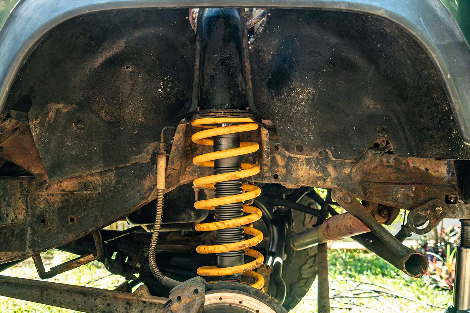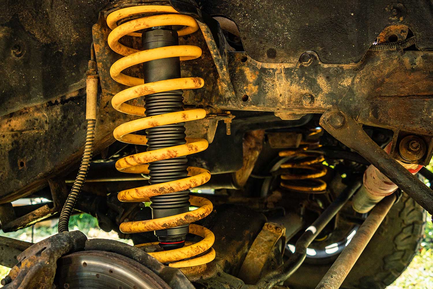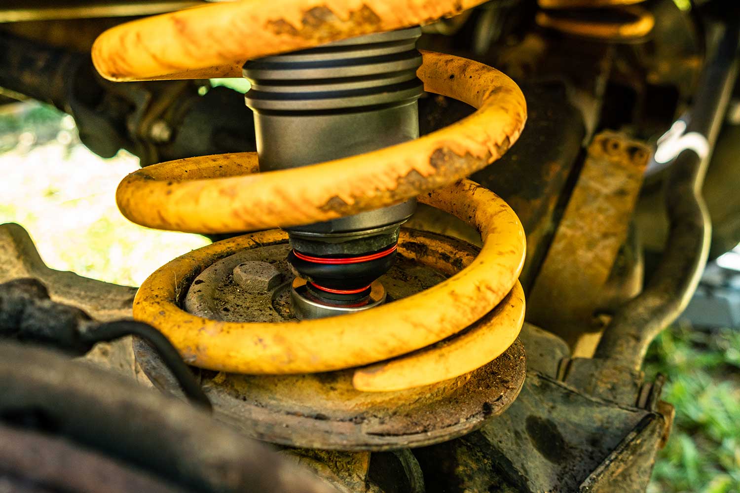 The front was much easier in comparison. We mounted the shock onto the turret and slotted the whole assembly back in place onto its mount. After securing the turret, we loosely put the bottom shock nut on. We then lowered the vehicle slightly, putting pressure on the system so we could tighten everything up. Although the front might sound more complicated, it was way easier as it required less lifting of the vehicle.