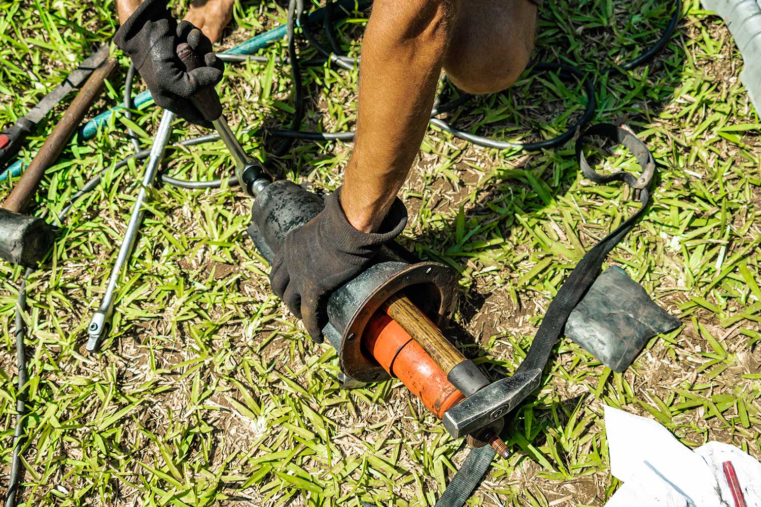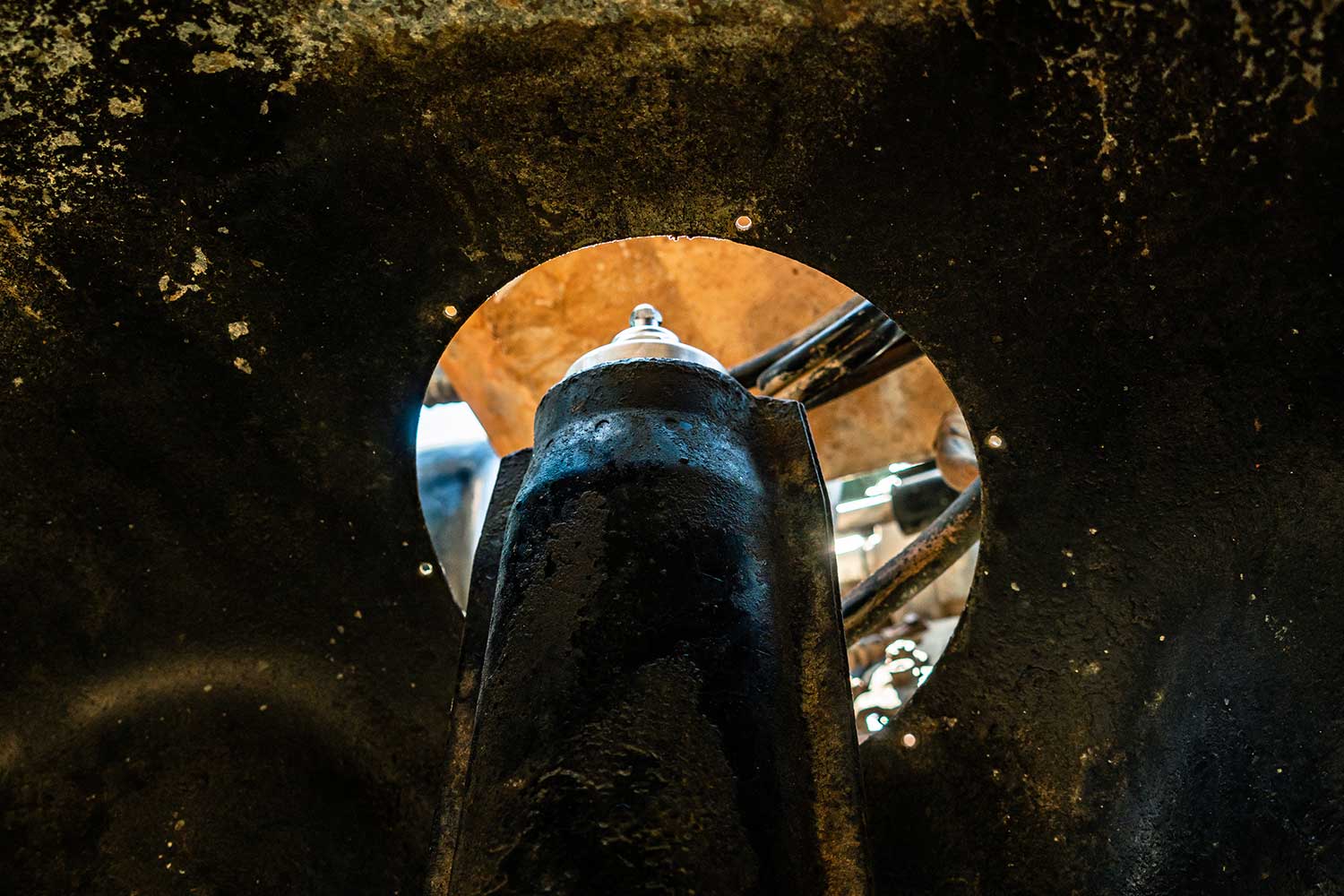 After we removed the old setup it was time to install the Nimbus Suspension shock absorbers. Again, we started at the rear, followed by the front. As we were doing this on a campsite our biggest challenge was lifting the vehicle high enough to create space to mount these pressurized shocks. As they can’t be compressed by hand, you need to stretch the vehicle’s suspension so these shock absorbers slot right in. Doing this in a modern-day workshop is relatively easy, as a normal workshop jack will likely lift the vehicle high enough. In our case, we used a bottle jack and had to use every single stone at hand to lift the vehicle step by step. Unfortunately for the campsite owner, this meant dismantling his fireplace, but that was quickly resolved afterward.