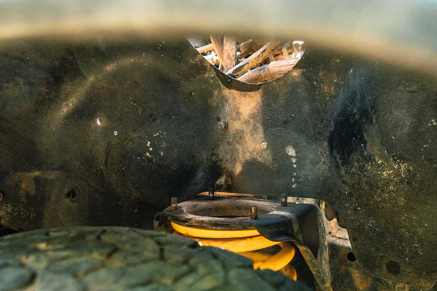 We started by removing the setup on the rear. Something that was mostly problematic due to the amount of rusted bolts, and rounded studs. We didn’t have the proper tools to deal with this, and at the time we were tackling the job all stores were closed due to civil unrest. However, after soaking everything in lubricant and adding some perseverance, it started to go our way.