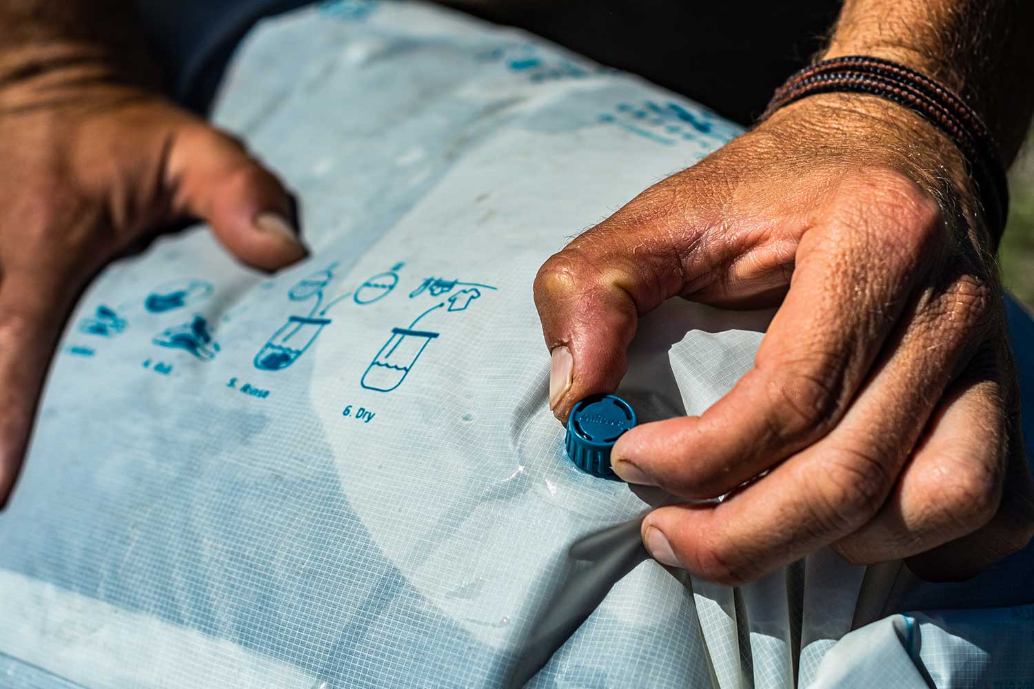Scrubba helps you to achieve a machine-quality wash in six steps, which is very welcome on our travels in which we constantly live outside and everything gets dirty and dusty. It includes a transparent window so you can check the state of your clothes or the dirtiness of the water. The outer material is slightly rough, helping you to grip onto it and make the cleaning movement more pleasant. The bag is outfitted with a twist-style air valve to remove any air, aiding in an effective wash. Due to its small size and weight of only 150 grams, you can bring it along wherever you go. Ideal for backpacking and hiking trips, weekend endeavors, or long-term overlanding.