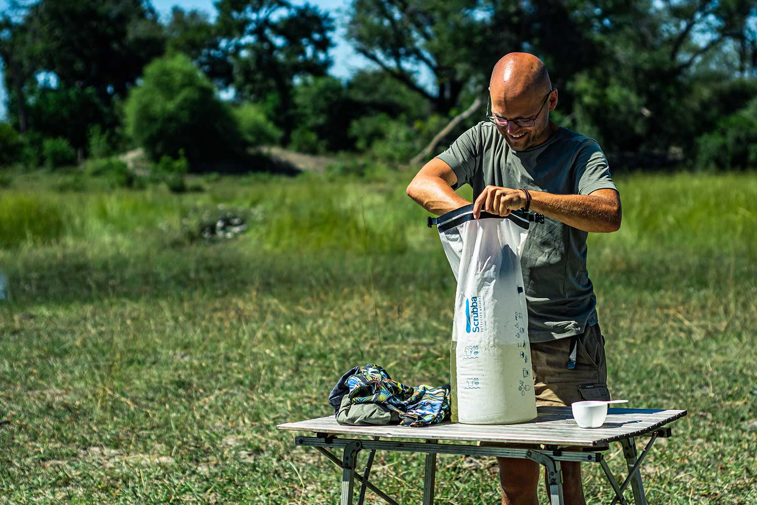 We love to camp in remote wild spaces, preferably with access to water. We thrive in such places and love to spend weeks on end here. Of course, that sounds great, but it comes with a certain set of challenges too. One of those challenges is the quickly growing bag of laundry, which is a direct result of being so far away from civilization. Over the years we’ve done our laundry in rivers, lakes, and buckets. Of course, this works okay-ish, but we felt like there should be a better solution. Especially in regions where there was a lot of mud, we struggled to do our laundry efficiently. That’s where the Scrubba came in, and so far it has proven to be a great asset for our overland gear arsenal.