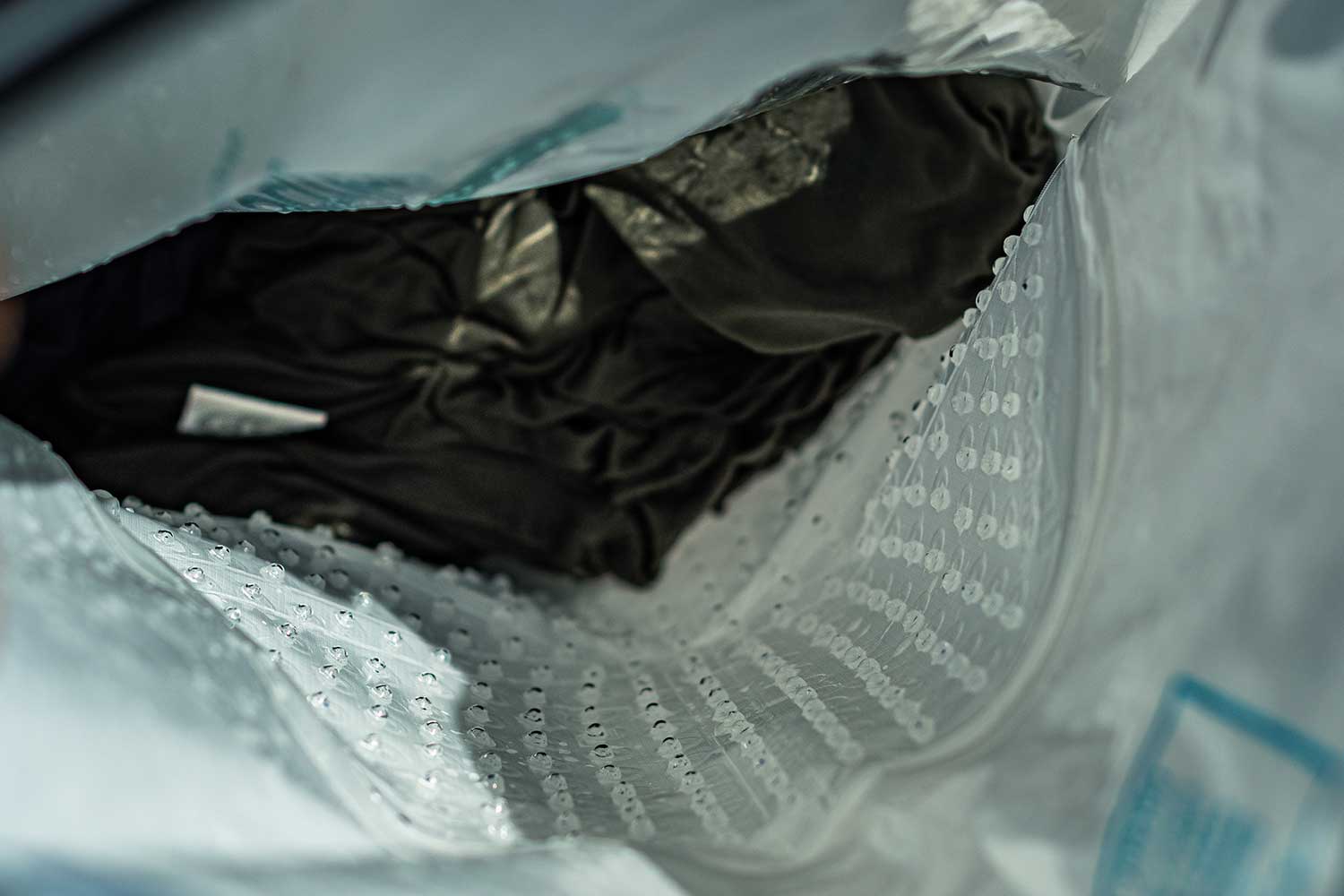 The wash bag is actually really simple to use. For us, using the wash bag correctly, and making full use of the integrated washboard, was a matter of trial and error. We found that it takes a certain balance between the amount of clothing and water, to function properly. They do provide you with the ratio on the bag, but in our experience, it depends on what you put on there. Socks and underwear are easily mixed around in the bag, whilst t-shirts and pants are a different story. It is especially with the latter two that we advise not to overdo it with the amount of clothes. As per their advice, it works best if you put in sets of clothes (a T-shirt, some socks and a few pieces of underwear for example).
