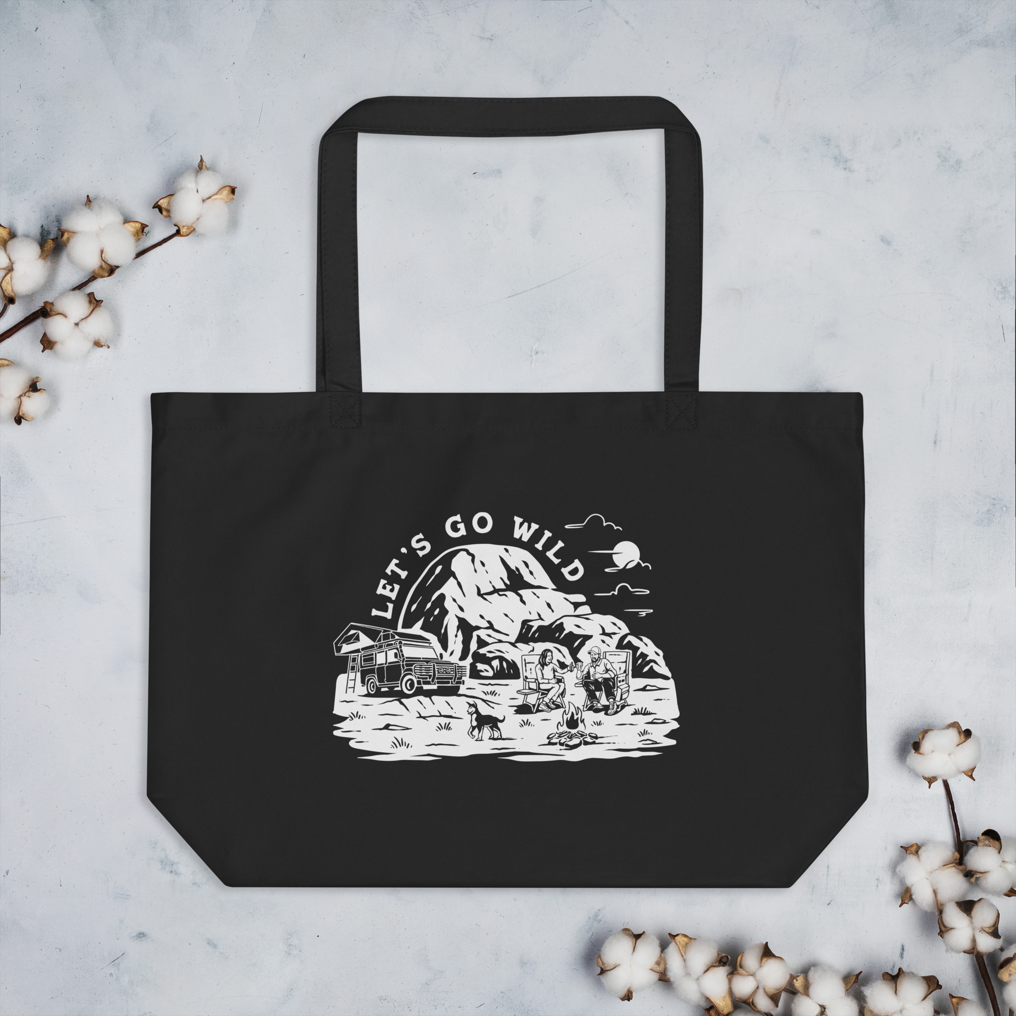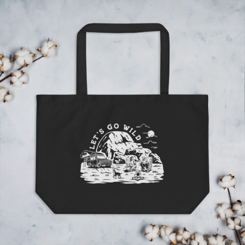 Large Organic Tote Bag Black – Let’s go Wild White