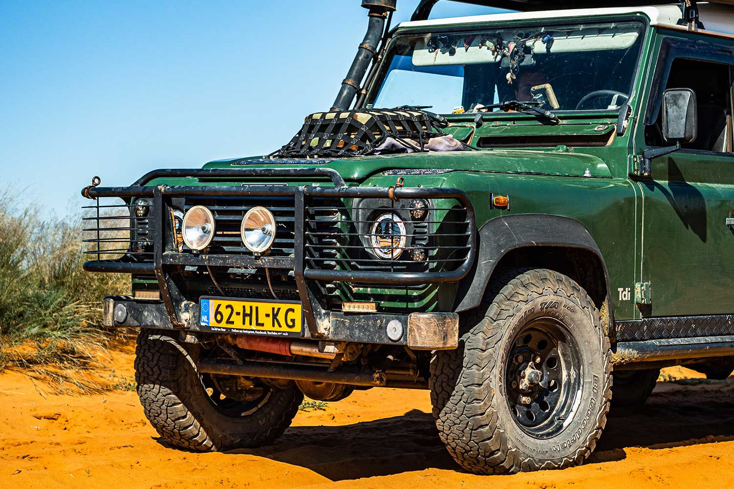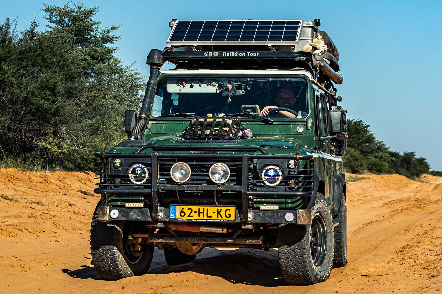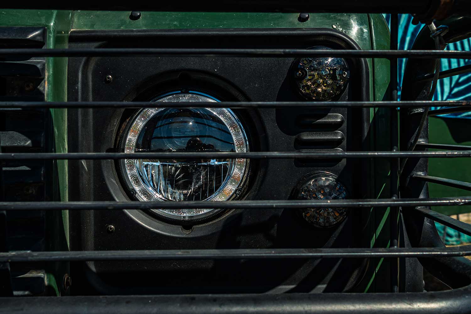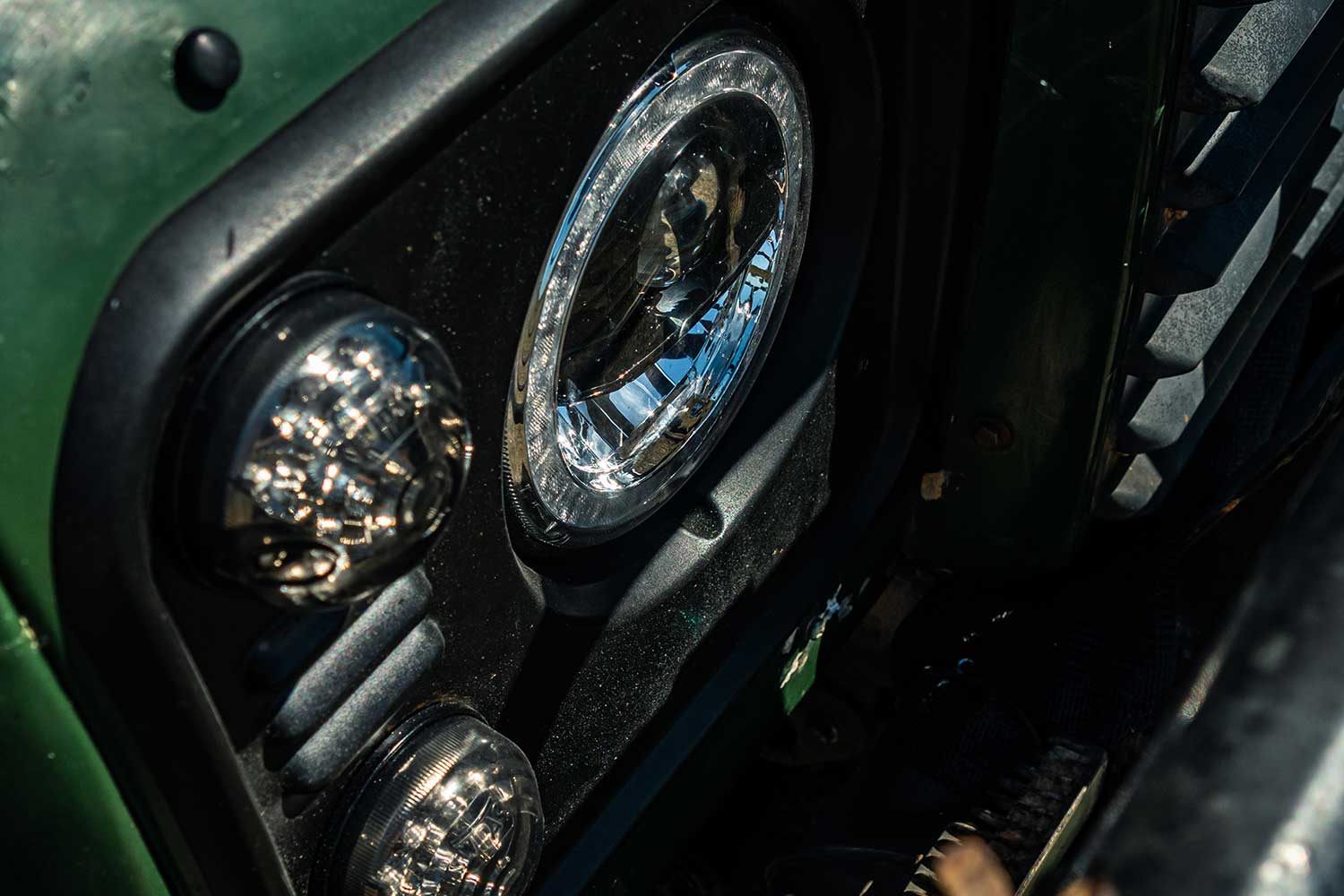 If you’ve ever driven a Defender at night you know how scary it can be. Our headlamps emit the same amount of light as candles, and any oncoming traffic on a highway will leave you blinded in the dark. Although we try to prevent nighttime drives on our overland journeys, they happen. Throw some breathtaking afternoon safari drives in the mix and you’ll end up making your way to camp long after the sun has set. For us, it was the safety factor, combined with the fact that we wanted to enhance Rafiki’s sleek looks, that made us opt to overhaul the lights fully. It was time for a headlamp upgrade!